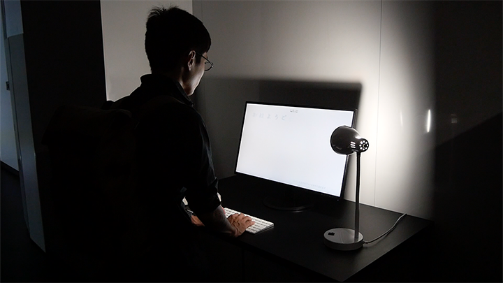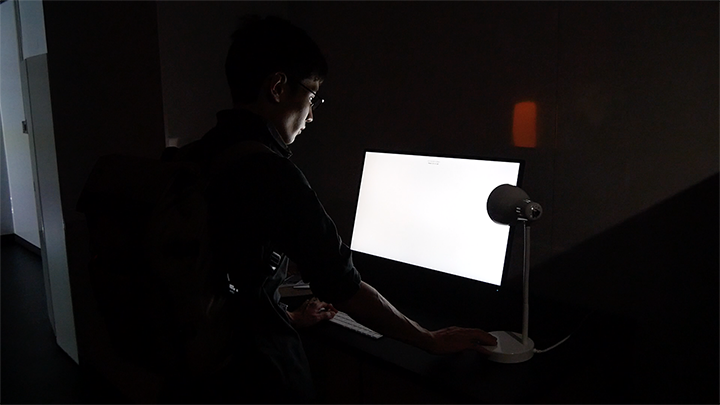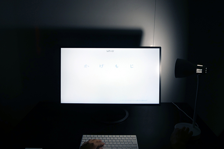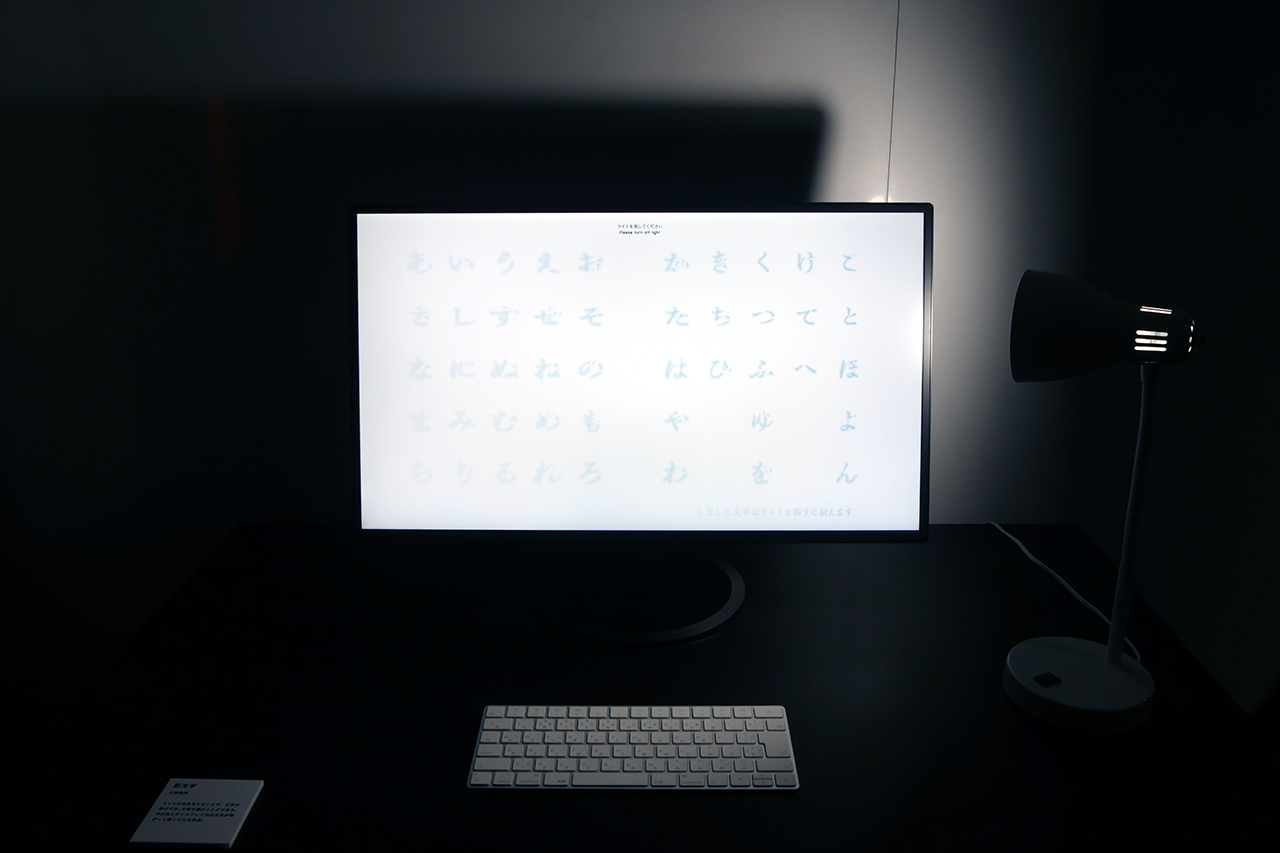 ライトの光をあてることで、文字の影ができ、文章を読むことができるテキストエディタ。 外の光とディスプレイ内の文字が繋がってるように感じます。 光と影の関係によって、ディスプレイ内に空間を感じる作品です。 「光と知覚」という展示に出展しました。
